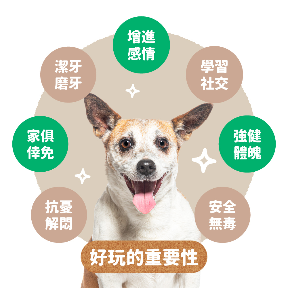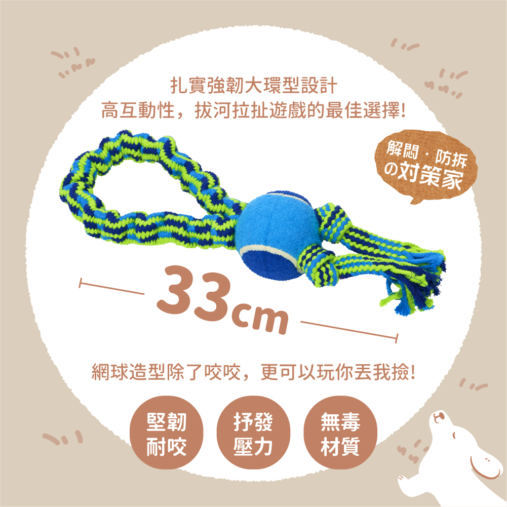 ▸ 環型咬繩:環型咬繩內含橡膠圈彈力設計,增加狗狗享受拔河樂趣