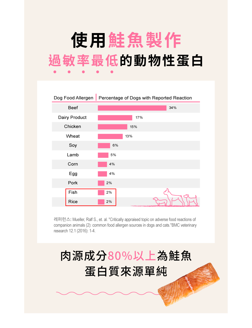 6. 使用過敏率低的動物性蛋白鮭魚製作