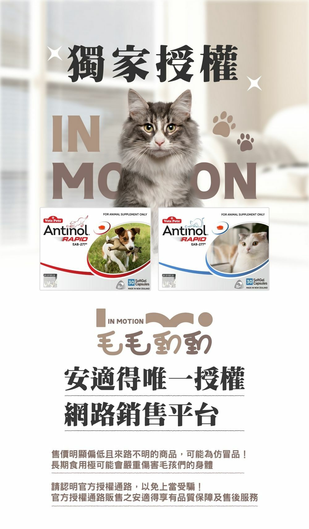 安適得唯一授權毛毛動動網站販售