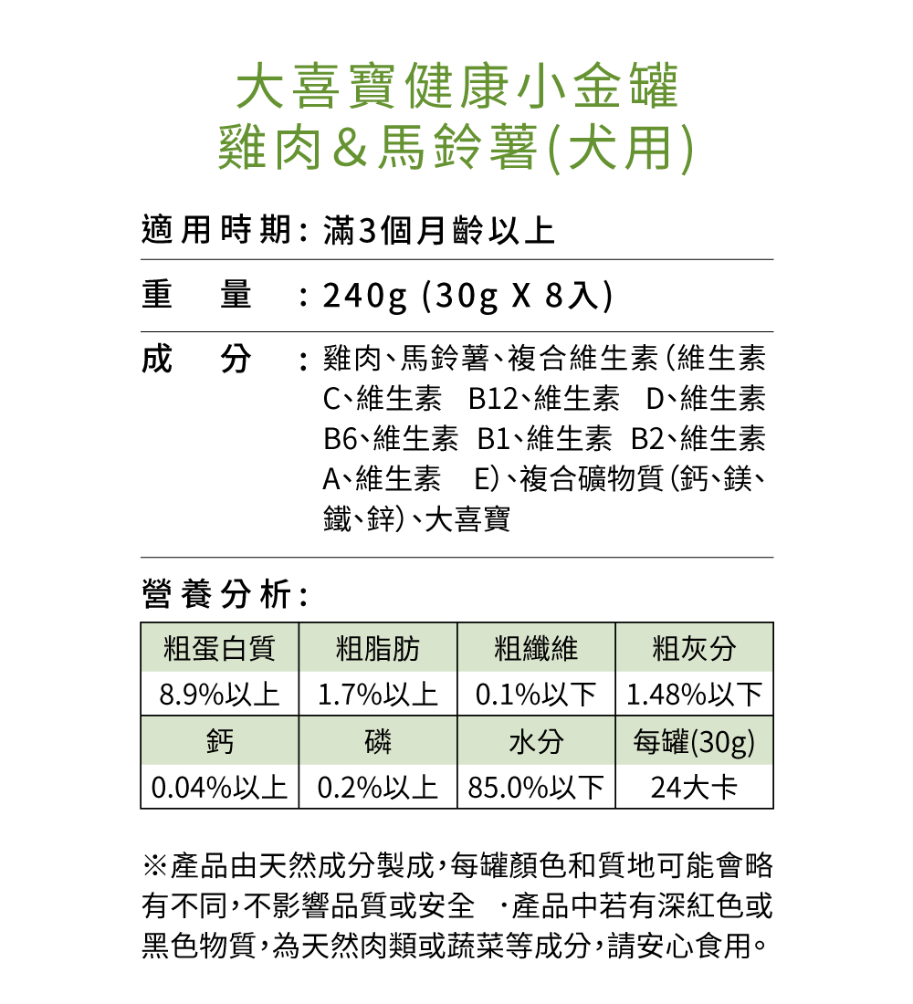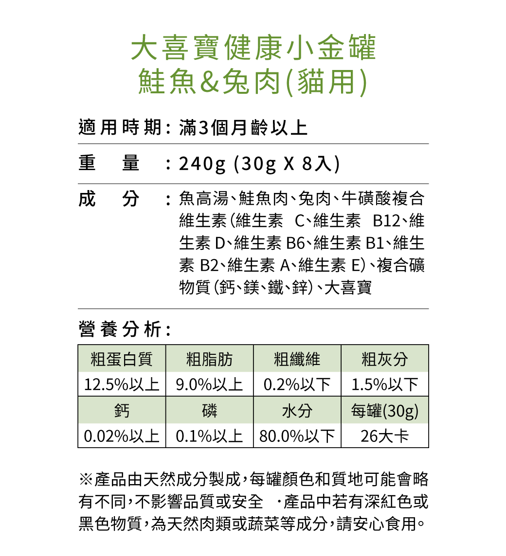2. 特別添加大喜寶成份,維持健康